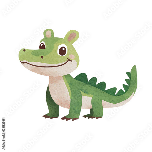 © Suchart, Obraz premium Cartoon Alligator Character with Friendly Expression and Vibrant Colors Perfect for Children's Media and Educational Content