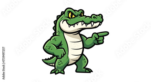 Fototapeta premium Cartoon Alligator Character with Pointing Gesture for Mascot or Illustration Projects