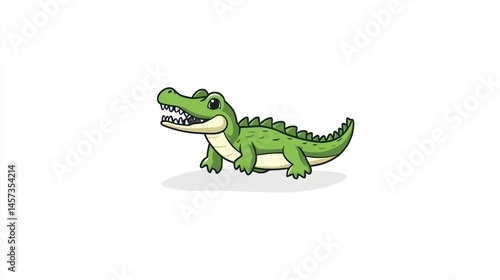 Naklejka premium Cartoon alligator on a white background, showcasing teeth and shaded skin
