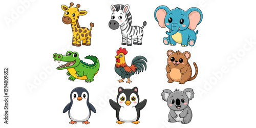 Obraz premium Cartoon Animal Characters: A captivating array of nine cartoon animal characters, each exuding unique charm and appeal, perfect for illustrating various themes.