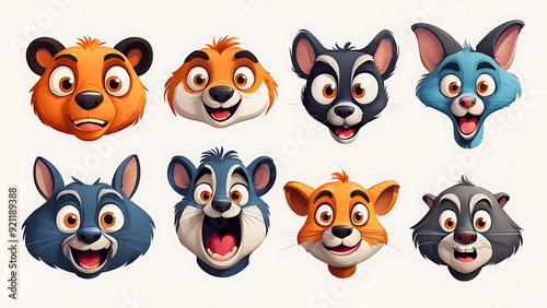 Fototapeta premium Cartoon animal faces with exaggerated expressions