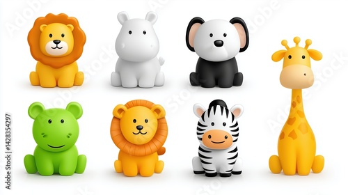 © michnik101, Fototapeta premium Cartoon animal toys set. collection of colorful jungle animal figurines for children