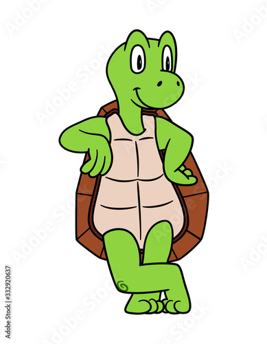 Fototapeta premium Cartoon Animal Turtle or Tortoise. Raster illustration. For pre school education, kindergarten and kids and children. For print and books, zoo topic. Smiling with happy face. friendly reptile posing