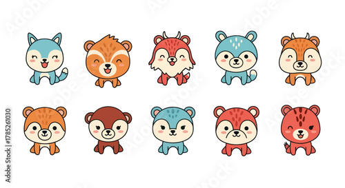 © Stylo, Obraz premium Cartoon animals collection diverse forest creatures characters for design