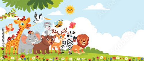 © yusufdemirci, Fototapeta premium Cartoon Animals Posing At Forest