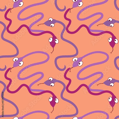 © Tetiana, Obraz premium Cartoon animals seamless snake pattern for wrapping and kids new 2025 year