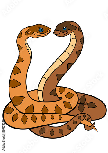 Naklejka premium Cartoon animals. Two cute vipers smile.