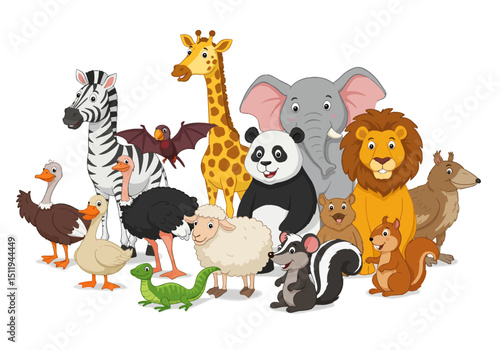Naklejka premium Cartoon Animals Zebra Giraffe Elephant Lion Panda and More