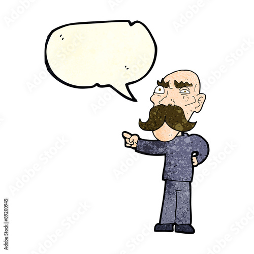 Fototapeta premium cartoon annoyed old man pointing with speech bubble