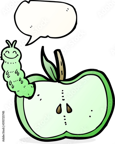 © lineartestpilot, Naklejka premium cartoon apple with bug with speech bubble