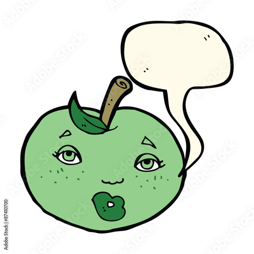 © lineartestpilot, Naklejka premium cartoon apple with face with speech bubble