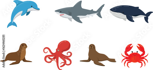 © Andriyani, Fototapeta premium Cartoon aquatic animals collection