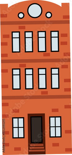 © vectorfusionart, Obraz premium Cartoon art showing red brick facade with door, multi-pane circular windows, transparent background