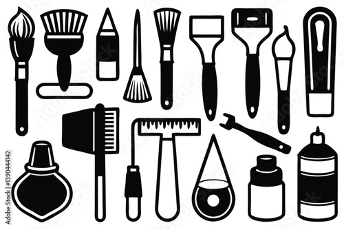 Obraz premium Cartoon Art Supplies Vector Set – Brushes, Paints, Pencils & More