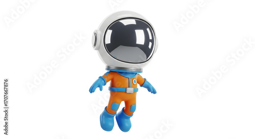 © robbi, Fototapeta premium Cartoon Astronaut Floating in Space, Isolated on White