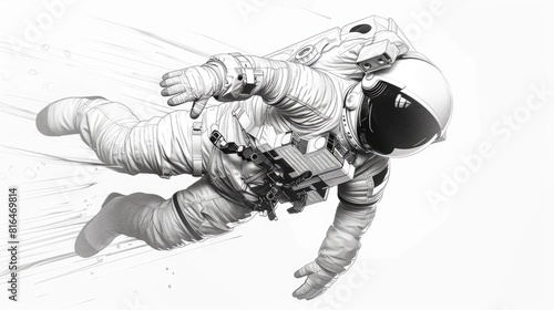 Fototapeta premium Cartoon astronaut in motion drawn with a soft graduated line