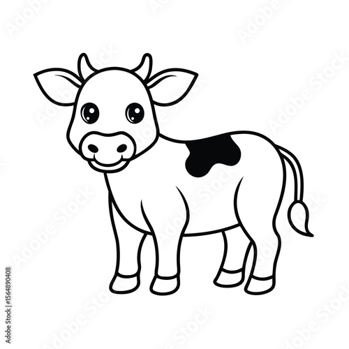 © nurealom, Naklejka premium cartoon baby cow line drawing outline vector