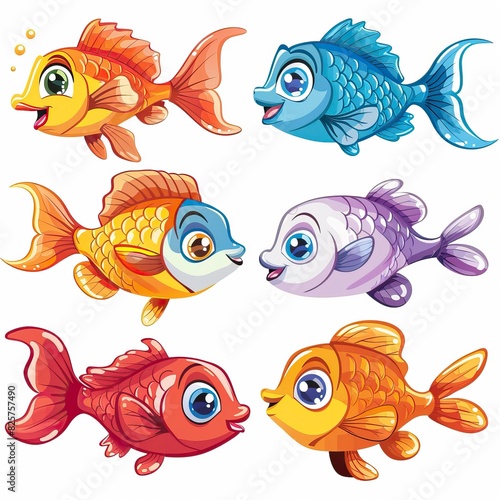 Fototapeta premium Cartoon baby fish set, vector illustration of a fish