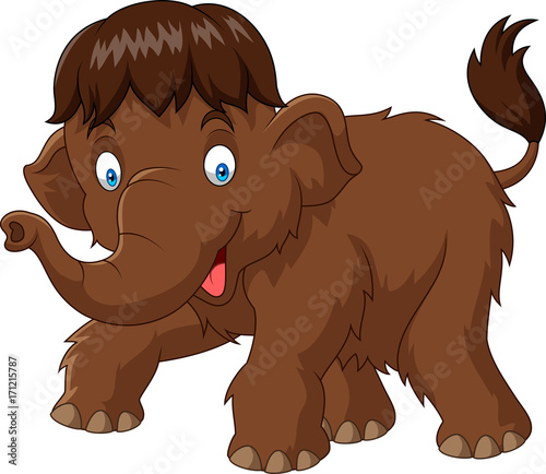 © tigatelu, Naklejka premium Cartoon baby mammoth isolated on white background