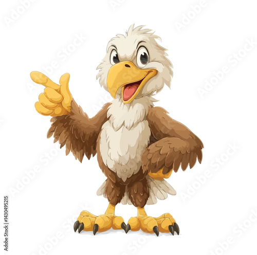 Obraz premium Cartoon Bald Eagle Mascot Smiling and Pointing – Friendly Character Illustration- Adobe Illustrator Artwork