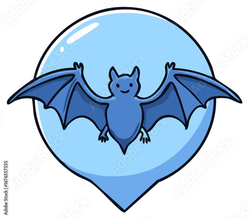 © Maryna, Fototapeta premium Cartoon bat illustration inside light blue pin location symbol
