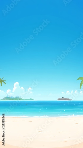© 红 王, Fototapeta premium Cartoon beach scene illustration