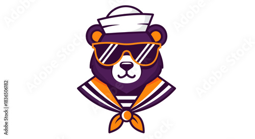 Obraz premium Cartoon bear in sailor outfit with sunglasses vector illustration