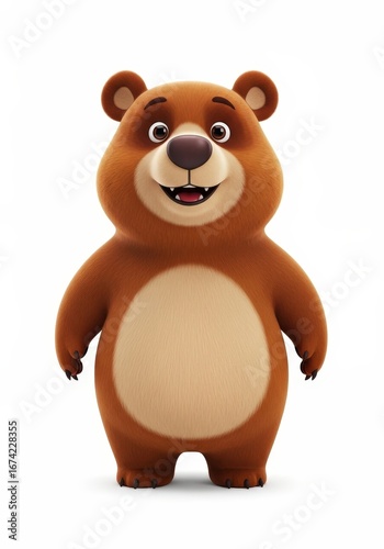 © Por, Fototapeta premium Cartoon bear with a smiling expression, rendered in 3D against a white backdrop, showcasing its full body