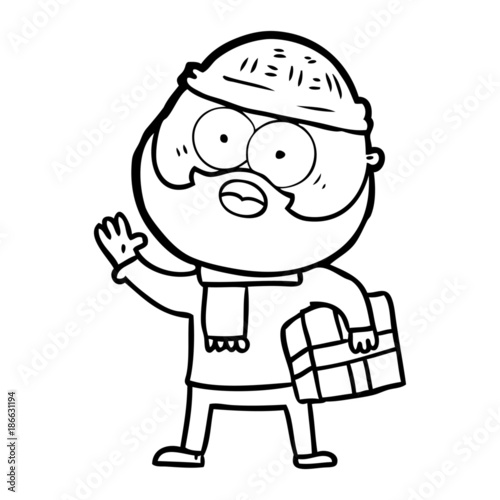 Obraz premium cartoon bearded man with present