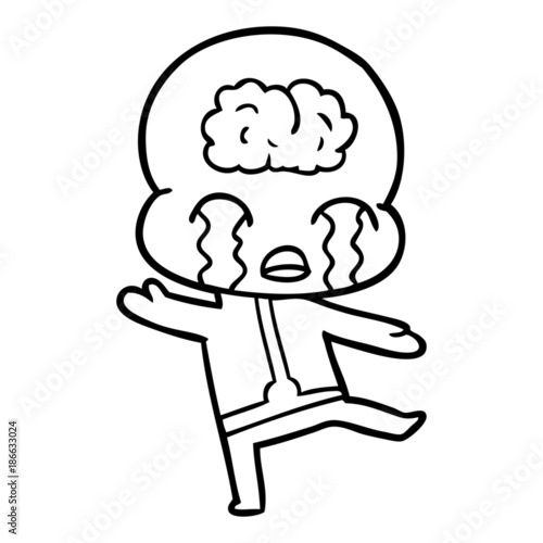 Obraz premium cartoon big brain alien crying