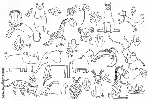 © andin, Obraz premium cartoon big set of cute doodle animals.