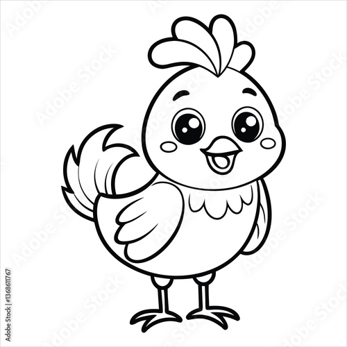 Fototapeta premium Cartoon bird character with feathers, cute baby chicken, and egg on a farm,...