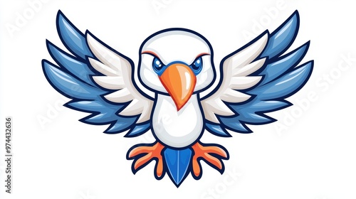 © Jiranath, Obraz premium Cartoon Bird with Blue Wings