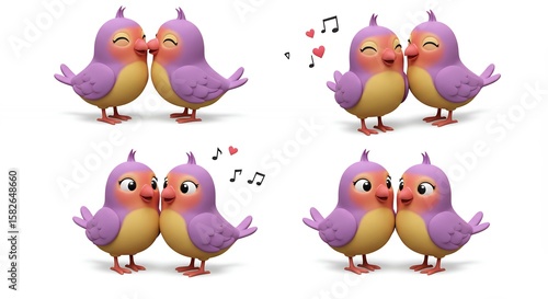 © Indah, Obraz premium Cartoon birds kissing love illustration