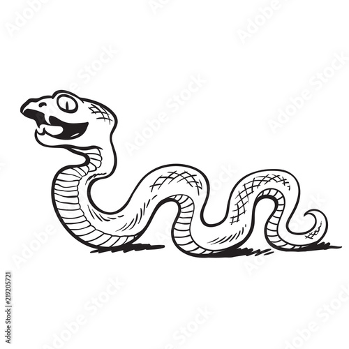 Fototapeta premium Cartoon black and white poison snake in sketch style