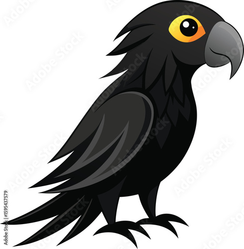 Obraz premium Cartoon black bird with bright orange eyes isolated on white background