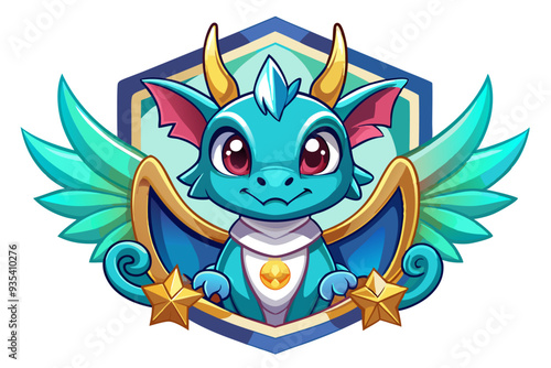 © cihuy, Fototapeta premium Cartoon Blue Dragon With Wings And Golden Stars