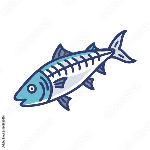 © Wahidur, Obraz premium Cartoon Blue Fish Illustration with Detailed Outline Design