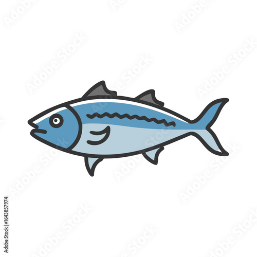 © Wahidur, Naklejka premium Cartoon blue fish with bold outline on black background