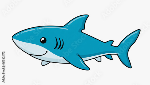 © Rully J, Naklejka premium Cartoon Blue Shark Swimming on White Background
