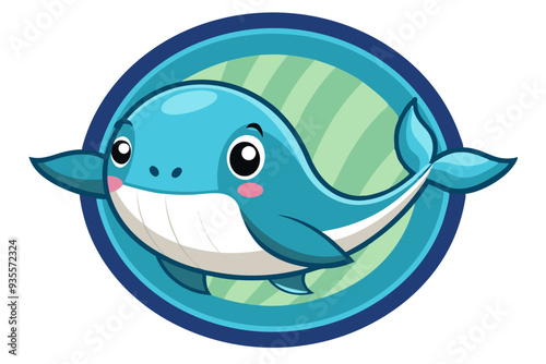 © cihuy, Fototapeta premium Cartoon Blue Whale with Big Eyes in a Circle