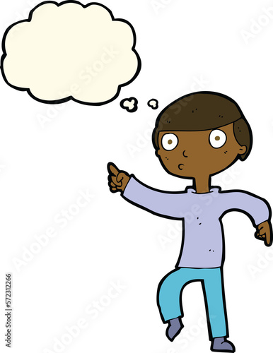 © lineartestpilot, Fototapeta premium cartoon boy pointing with thought bubble