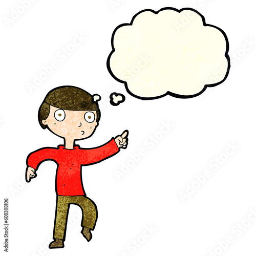 © lineartestpilot, Obraz premium cartoon boy pointing with thought bubble