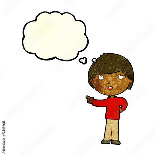 © lineartestpilot, Obraz premium cartoon boy pointing with thought bubble