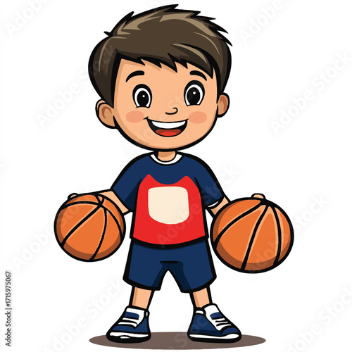 Obraz premium Cartoon Boy Ready to Play Basketball with Two Balls