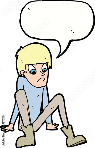 Fototapeta premium cartoon boy sitting on floor with speech bubble