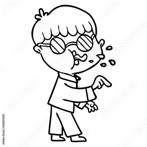 © lineartestpilot, Fototapeta premium cartoon boy wearing spectacles and making point