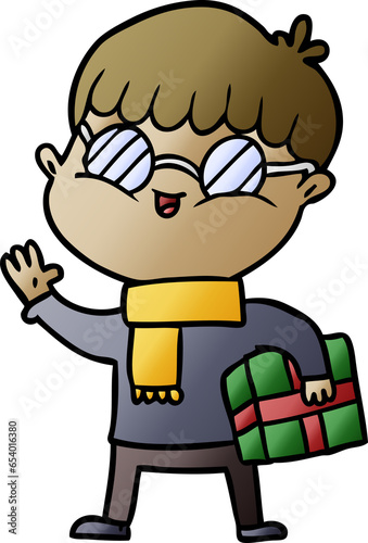 Fototapeta premium cartoon boy wearing spectacles carrying gift