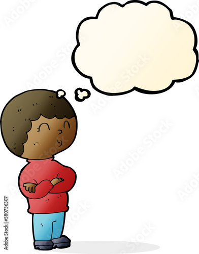 © lineartestpilot, Obraz premium cartoon boy with folded arms with thought bubble