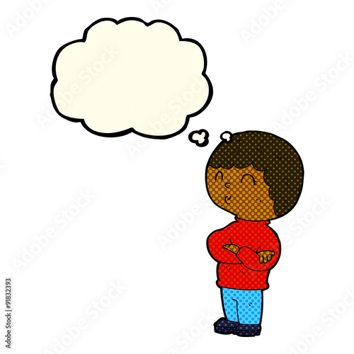 © lineartestpilot, Obraz premium cartoon boy with folded arms with thought bubble